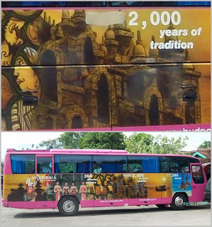 Bagaimana menggambarkan kekayaan Indonesia? “350 diverse cultures, 2000 years of tradition, 17,580 islands”. Keragaman ini menjadi potensi yang dijual kepada wisatawan, sebagaimana tampak dalam satu bis pariwisata ini, yang terlihat di Objek Wisata Gua Jatijajar, Kebumen, Jawa Tengah, tahun 2009. Sponsor kendaraan ini sebagaimana terlihat adalah Kementrian Budpar dengan website www.my-indonesia.info dan www.budpar.go.id