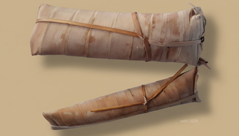 Lontong dari Pulau Lombok ini cukup unik. Tidak dibungkus dengan daun pisang seperti yang saya kenal selama ini, namun dibungkus dengan daun aren, mirip dengan clorot di Purworejo.